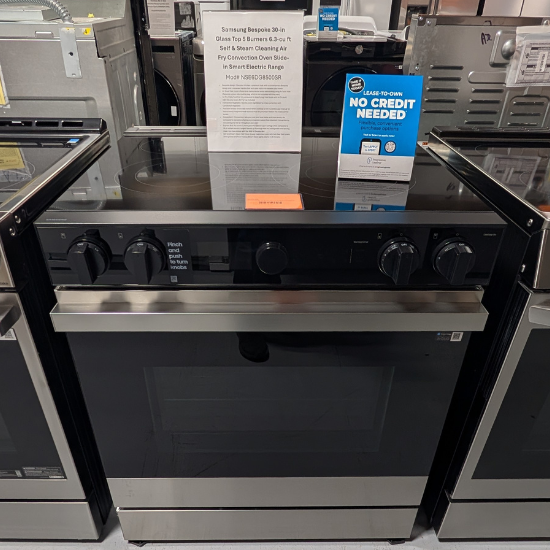 Samsung’s smart electric range features a stylish and contemporary Bespoke design with a recessed handle that seamlessly blends into your kitchen for an elegant and minimalist look. Air Sous Vide locks in flavor and moisture so you can enjoy gourmet cooking at home* and Air Fry built into the oven lets you cook healthier** fried food.* Requires a sous vide cooking bag, which is not included with the oven.** As compared to deep frying.